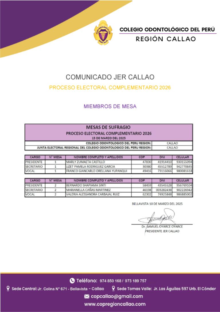 🗳️ El Colegio Odontológico del Perú – Región Callao comparte el Cronograma Oficial de las Elecciones Generales COP 2025, aprobado por la Junta Electoral Nacional.